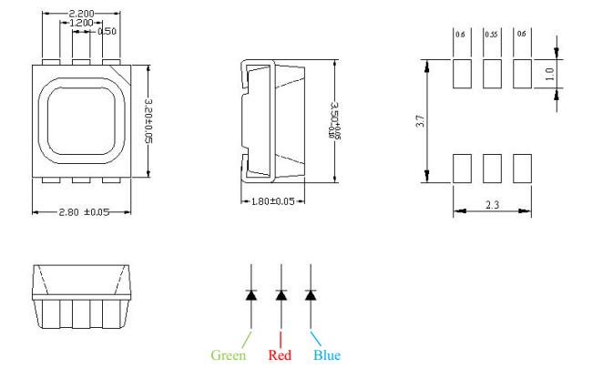 | TM-S3528RBPG-E (红/蓝/黄绿三色) | Red | AlGaInP | 120° | 2.8 | 3.4 | 350 | 550 | 620 | 630 | 20MA |