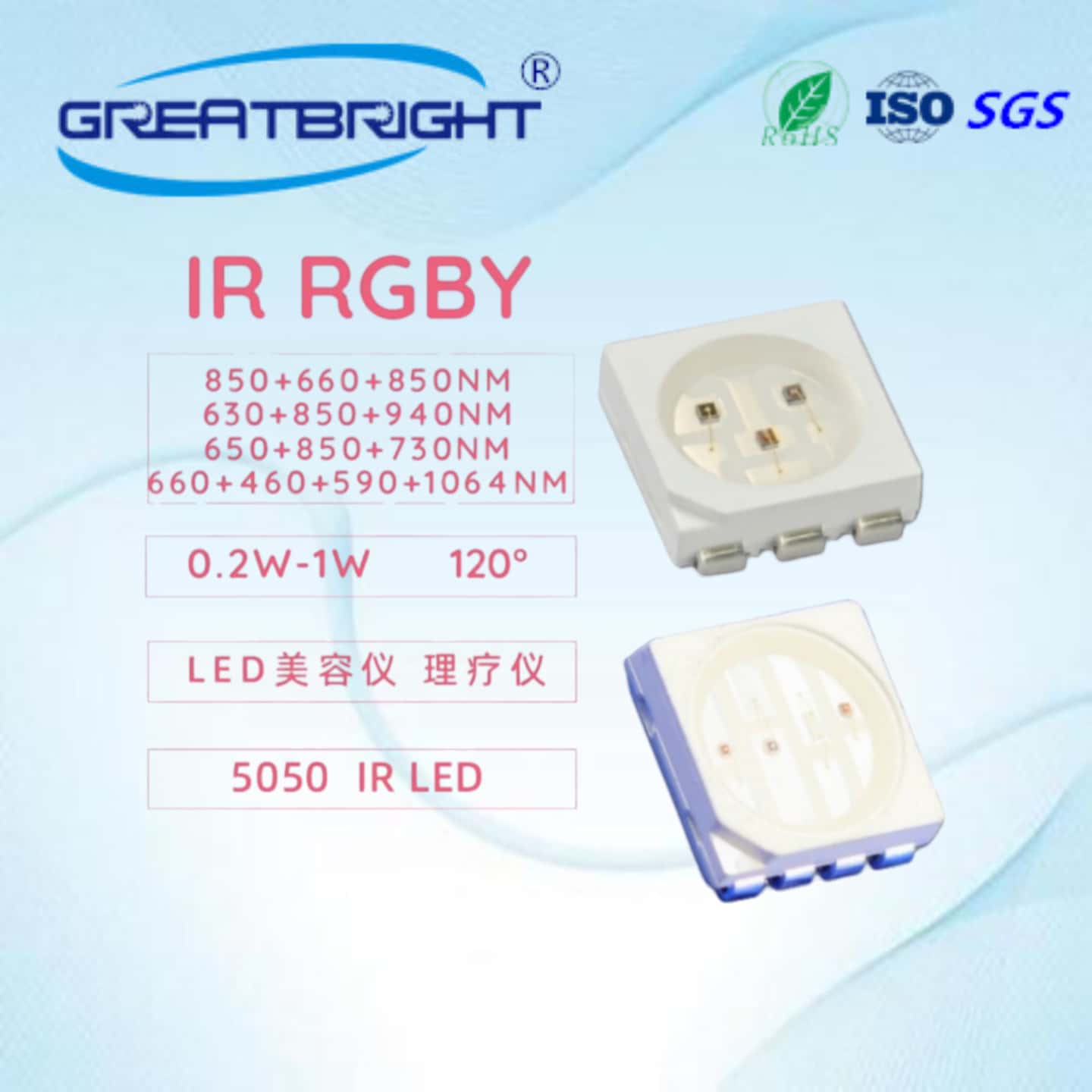 美容理疗5050灯珠三合一620NM+850NM+940NM 立即咨询