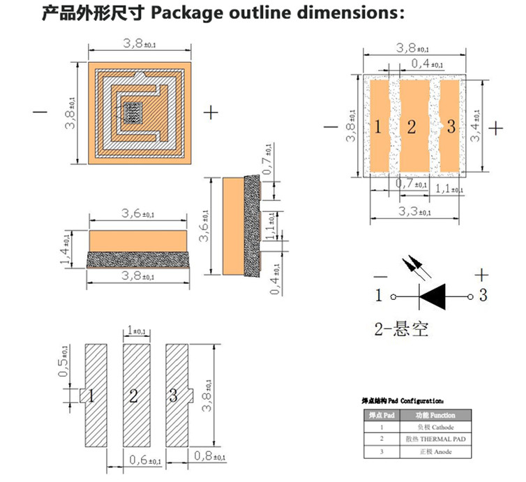 产品尺寸:3.8*3.8*H1.4